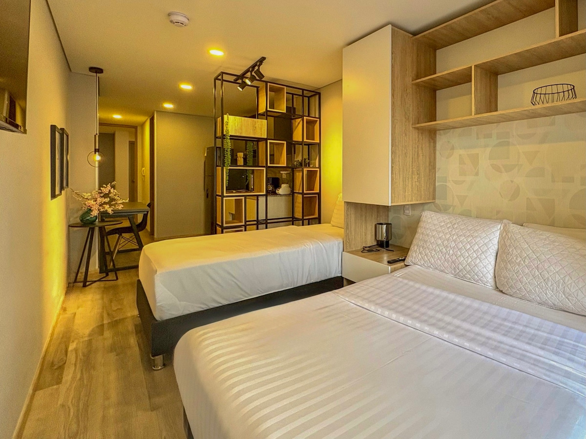 Ismerd meg Bogotát egy elegáns, magas szintű menedékhelyről, amely az exkluzív T zóna, az éjszakai élet, éttermek, bárok és dizájner butikok epicentruma mellett található. Az épület éjjel-nappali biztonságot nyújt, és elhelyezkedésének köszönhetően érezheted a környék élénk és ünnepi hangulatát. Tökéletes azok számára, akik stílusra, kiváló elhelyezkedésre és luxusvárosi élményre vágynak.