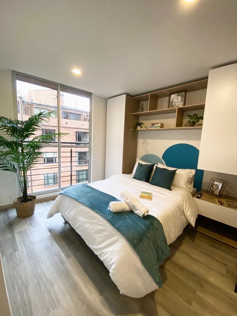 Bogotá egyik legexkluzívabb és legélénkebb területén található. Éttermek, bárok, éjszakai klubok, luxusüzletek és bevásárlóközpontok széles választékáról ismert, mint például az Andino. Ez a város szórakozásának, éjszakai életének és turizmusának találkozóhelye. Nyitott és világos lakás, modern és tágas kialakítással, amely lehetővé teszi a természetes fény bejutását. Nagy sebességű internet, okostévé, meleg víz, lift, közös munkaterület és 24 órás felügyelet.