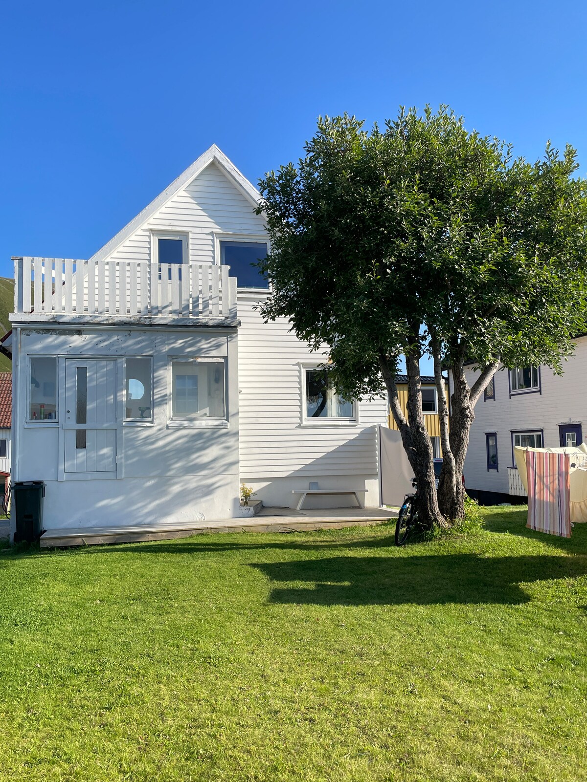 Nagy ház garázzsal Bleik falu közepén. Közel a bolthoz, a strandhoz, a kocsmához, a túraútvonalakhoz, a csónakázáshoz és a buszmegállóhoz. A télikertből egy nagy verandára mehetsz. Itt grillezhetsz, úszhatsz a jacuzziban, vagy csak hallgathatod a hullámokat és a csiripelő madarakat. Rengeteg hely van a nappaliban és egy nagy étkezőasztalnál. Garázs elektromos autó töltésével, nagy parkolóhellyel és négy kerékpárral. Három hálószoba kétszemélyes ággyal. A legnagyobb hálószoba saját verandával és kanapéággyal rendelkezik, amelyet például ki lehet ütni néhány gyereknek.