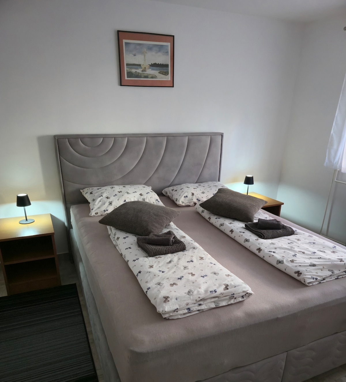 Teljesen felújított LAKÁS Vinkovciban. Felszereltség: - Konyha (sütő, hűtő-fagyasztó, mikrohullámú sütő, főzőlap) - nappali (légkondicionáló, kanapéágy, erkély, okostévé, ingyenes Wi-Fi, Netflix) -fürdőszoba (zuhanyzó, mosógép, hajszárító, törölközők) - Hálószoba (kényelmes franciaágy, okostévé) Önálló bejutás és távozás - az adatvédelem garantált. Üzletek, kávézók, éttermek, belváros (5 perc), vasútállomás, ingyenes parkolás a közelben.