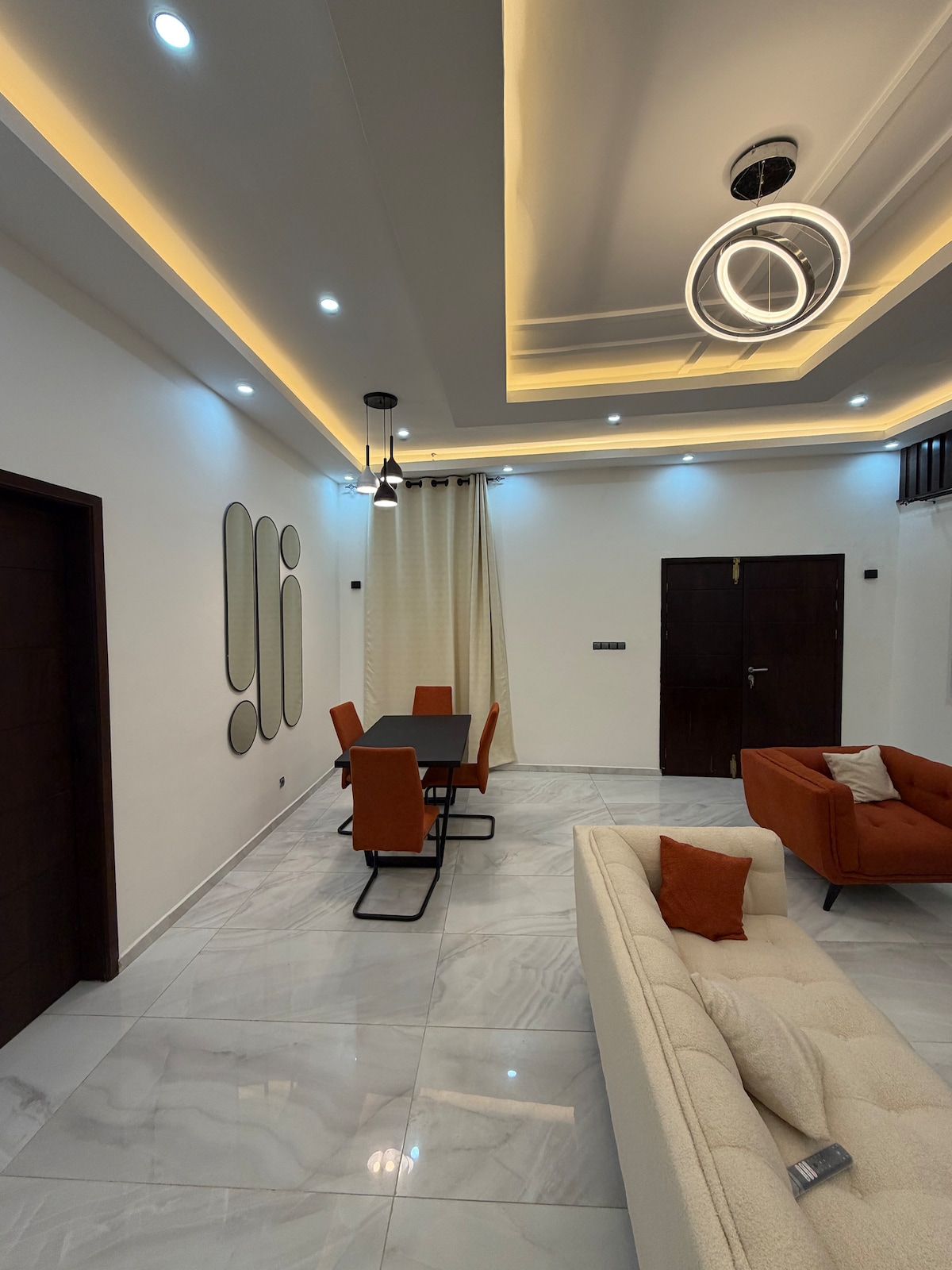 Enjoy a relaxing stay in our spacious 4-bedroom beachside villa located in the peaceful neighborhood of Baguida, just minutes from Lomé city center. * 4 Luxurious Bedrooms – Perfect for families, groups of friends, or stylish getaways. * Modern Designer Bathrooms – refresh and unwind after a day of exploring. * Fully Equipped Kitchen – Prepare meals with ease in a sleek and functional kitchen. * Great Location – Close to restaurants, malls, the city center, and the international airport.