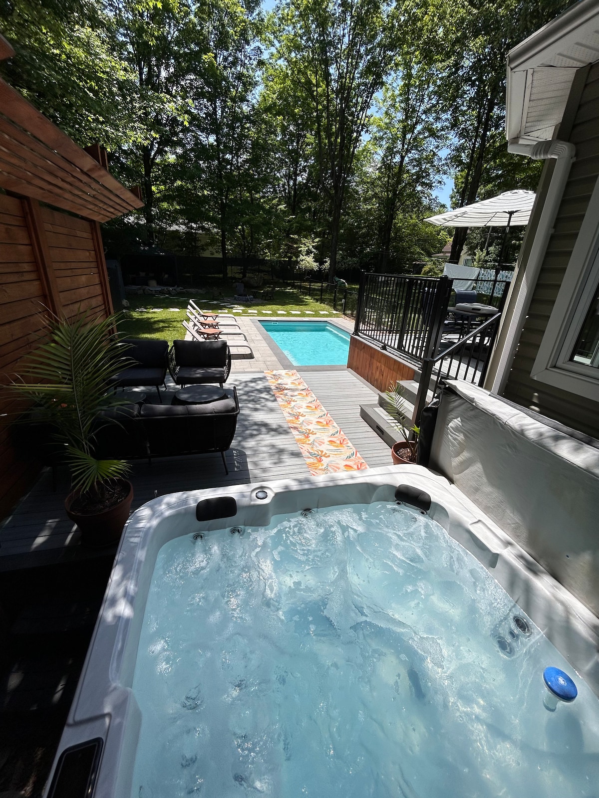Csendes ház medencével és gyógyfürdővel.