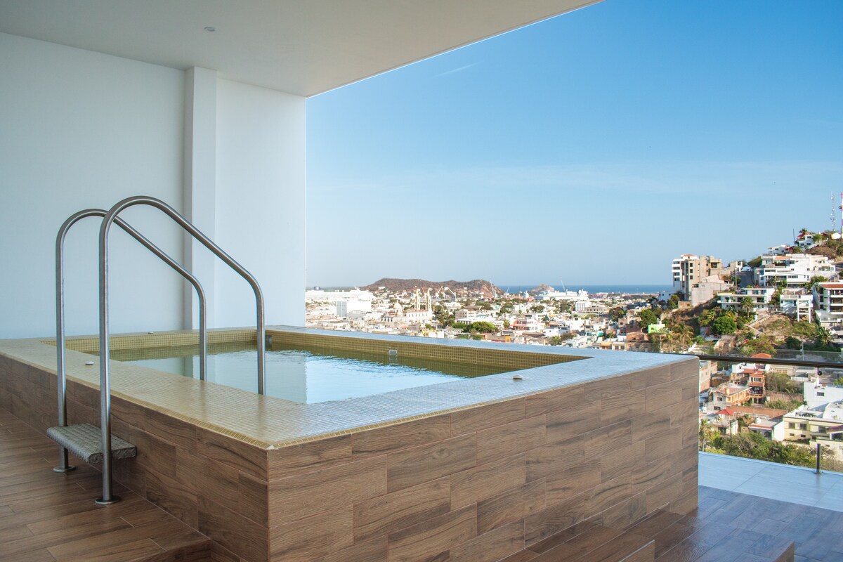 Élvezd a békés és stílusos tartózkodást ezen a központi elhelyezkedésű helyen, sétatávolságra a belvárostól, a Plaza Machadótól és a strandtól. Élvezd az első sorban található ülőhelyeket a csodálatos naplementékben, ahonnan páratlan kilátás nyílik az óceánra és a kikötőre. A Cerro de la Neveria negyedben található, egy exkluzív, magas biztonságú komplexumban. Pihenj, és élvezd mindazt, amit a Mazatlan kínál éjjel-nappal!