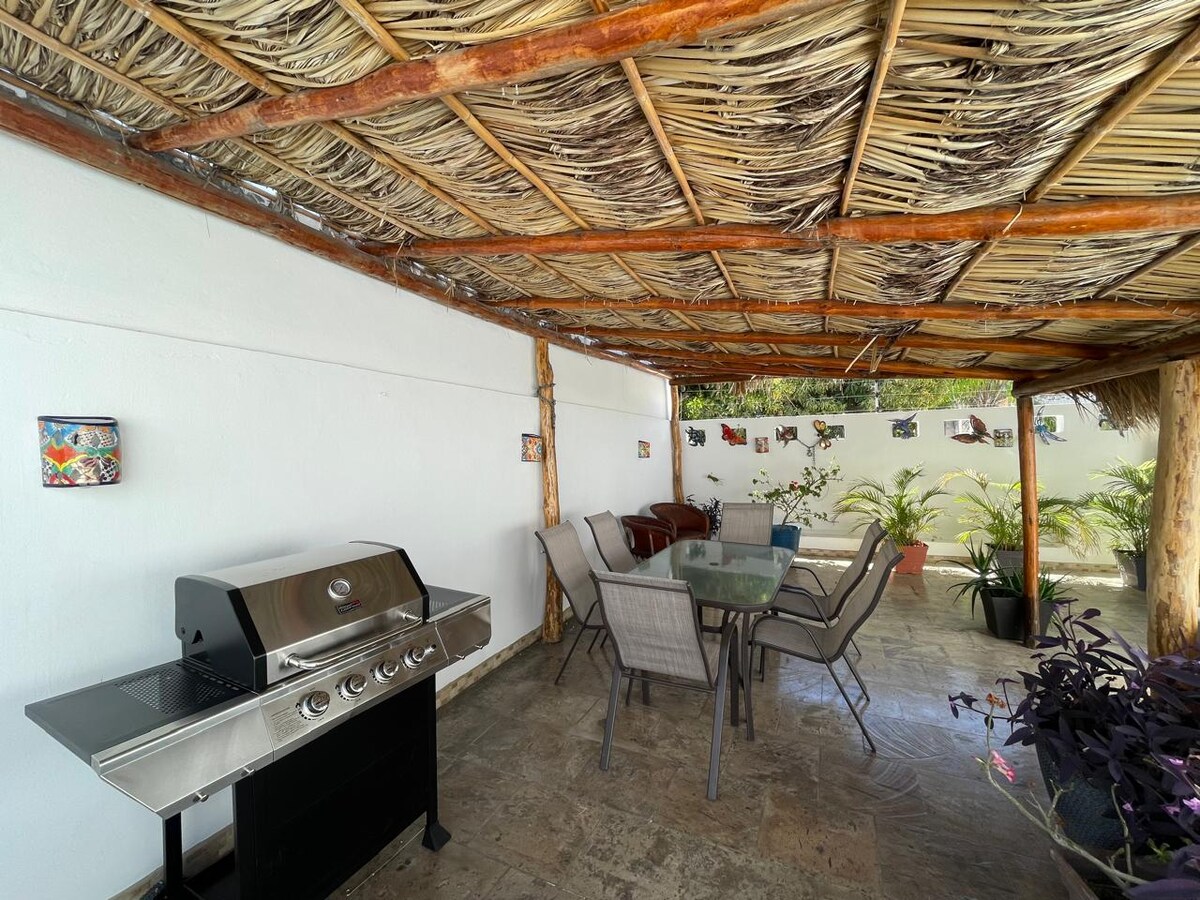 A békés Playas de Sur negyedben található tágas, 2 hálószobás, 2,5 fürdőszobás lakás ideális menedék azoknak a 6-8 fős családoknak és csoportoknak, akik szeretnék élvezni Mazatlán szépségét és nyugalmát. Pihenj, miközben a tetőkertből nézed a naplementét, vagy élvezd az épület két medencéjét. Fedezd fel a környéket a történelmi központ és az Olas Altas strand felé sétálva, és élvezd a helyi gasztronómiát, amely mindössze néhány perc alatt elérhető.