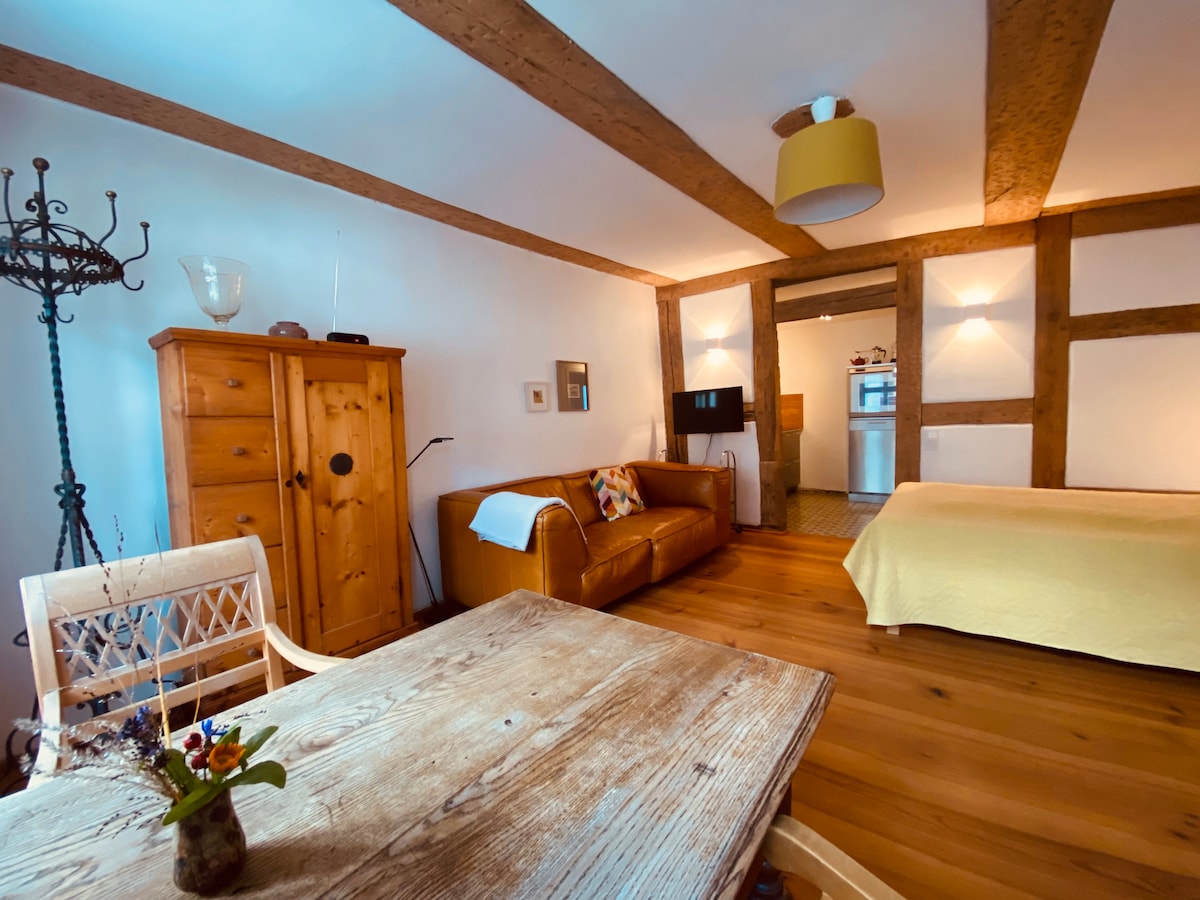 Egy meghirdetett épületben, Angermünde gyönyörűen felújított történelmi központjának közepén, sétatávolságra a vasútállomástól (1 óra a berlini főpályaudvartól). Minden üzlet sétatávolságra van. Közlekedési szempontból nyugodt övezet a ház előtt és az egész városközpontban. Parkolóhelyek közvetlenül a ház előtt vagy a közvetlen közelben. Sétatávolságra a Mündesee-től és a gyönyörűen megtervezett sétánytól. Nyáron (július + augusztus) a minimális bérleti idő 1 hét.