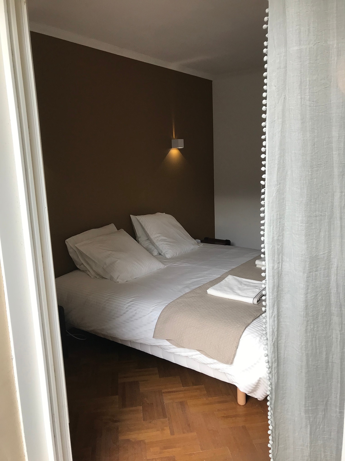 Votre logement comporte deux pièces sur le deuxième étage privatif : une chambre calme, décorée, avec la lumière traversante de deux fenêtres ( bureau, un lit double, une petite penderie, un chevet, un porte valise et deux fauteuils) et une salle de douche récente, un espace yoga-méditation. wc partagé au premier étage sans lavabo, escalier de meunier du 1er étage au 2e. Maison ancienne quartier calme 15 mn à pied du centre / gare. 1 voyageur. Pas de visite. draps 100 %coton lavés à 60 degrés