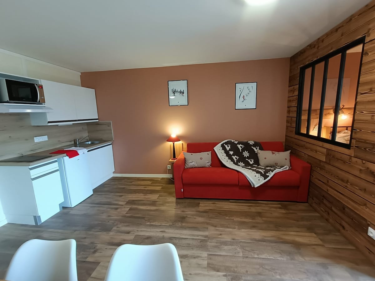 Ce logement paisible offre un séjour détente pour toute la famille. Cosy et chaleureux. Situé dans une résidence en rez-de-jardin d'une superficie de 28 m2 et classé meublé de tourisme ** par Gîtes de France. Terrasse plein Sud avec vue sur le massif du Beaufortain. Composé d'une cabine avec un lit superposé, d'une Salle de Bain, d'une douche et WC. Couloir avec dressing et une pièce à vivre avec coin cuisine. Départ des pistes à 150 mètres retour à ski à 50 mètres de l'appartement.