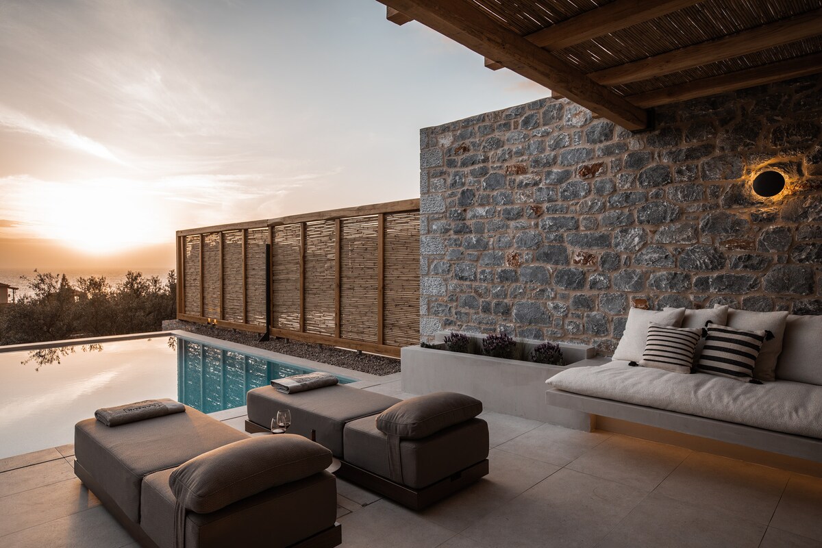 Just 400m from the beach, this stone-built villa features a private pool, sea views, and modern comfort. Part of the Castor & Pollux estate, it blends high-quality design with the natural beauty of Mani. Calm interiors, authentic architecture, and a serene setting make it ideal for couples or families seeking relaxation close to Agios Nikolaos and the coastline.
