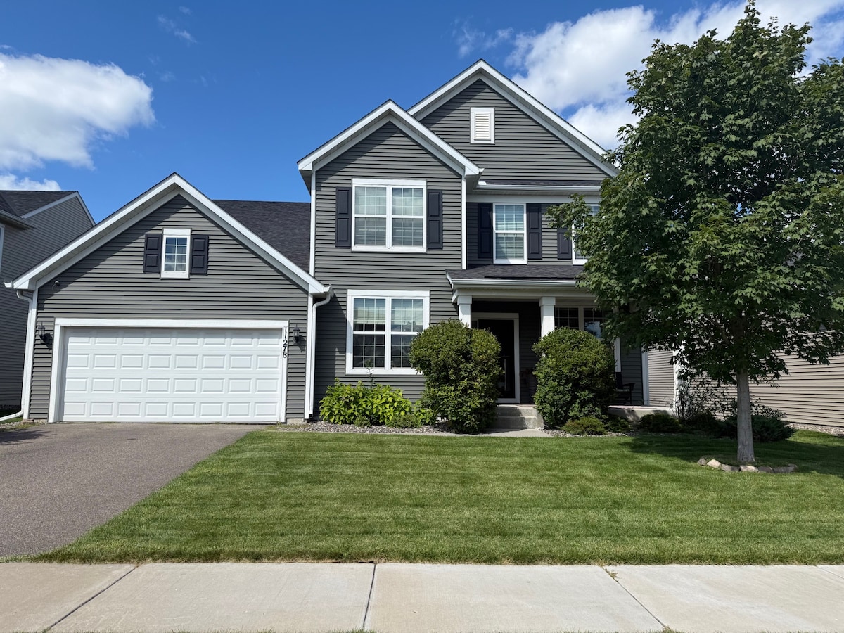 Welcome home to this spacious and fun 4BR home only 3 miles or 7 minutes from the National Sports Center. This clean and comfy family style home includes a fully stocked kitchen, coffee/tea station, complimentary soaps, huge smart TVs, comfy beds, air hockey, ping pong table, patio, gas grills, ample driveway parking + 2 car garage. Hosted by the 5 Star Lux Life Rental Team. We are here to ensure you have comfortable and 5 star stay.