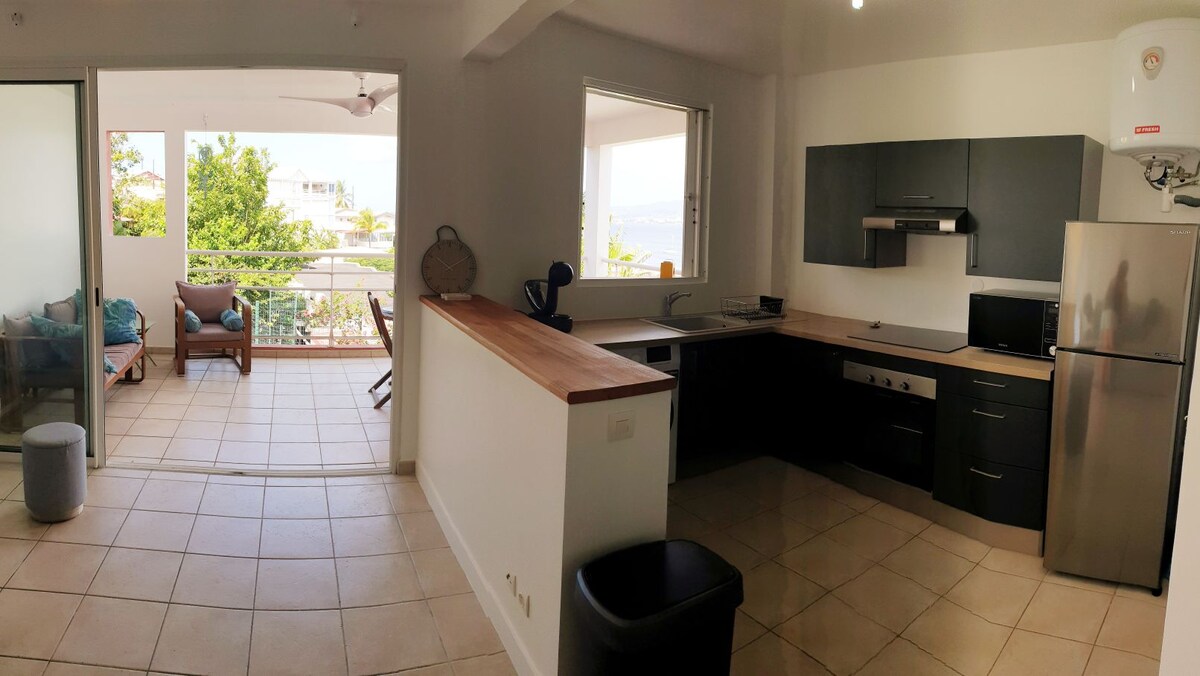 Az apartman 800 méterre található az Anse à l 'Ane strandtól, a magasban, ami lehetővé teszi, hogy élvezze a kellemes szellőt a forró órákban. Csendes és lakóövezeti környezetben gyönyörű kilátás nyílik a Fort de France-öbölre. A villa alján található, teljesen független, és külön bejárattal is rendelkezik. Ideális pároknak, kis medencéje tökéletes hely a lehűlésre, amikor visszatérsz a kirándulásokról.