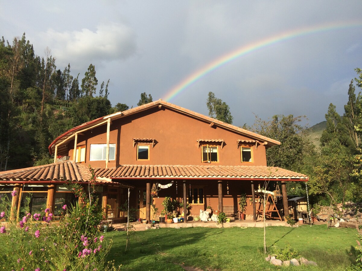 Casa ecológica nueva, amplia e iluminada. Localizada en el corazón del Valle Sagrado, a 5 min del centro de Urubamba y 20 min de Ollanta. Rodeada de montañas y con un riachuelo que pasa dentro de la propiedad. Cama King size, espacio para yoga o trabajo, balcón y agua caliente solar en cocina, baño y ducha. Ideal para reconectar con la naturaleza sin renunciar al confort. Hecha con amor, pensada para tu bienestar. ¡Te esperamos!