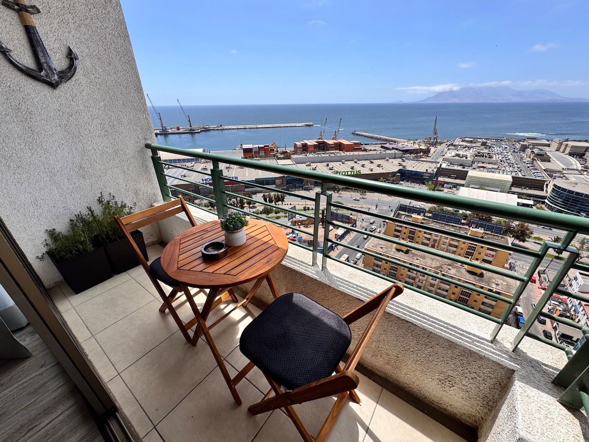 Espacioso departamento ideal para hospedarte por trabajo o vacaciones completamente equipado cuenta con una hermosa vista panorámica al mar en primera línea. Tenemos a solo pasos de Lider express, Gimnasio , farmacias, bencinera, pubs ( Ciragan, papa johns , Niu sushi, cafetería, terminal de buses y hospital regional ) también a solo 7 minutos del mall de Antofagasta en vehículo. Recibimos a tus mascotas somos PET FRIENDLY 🐶