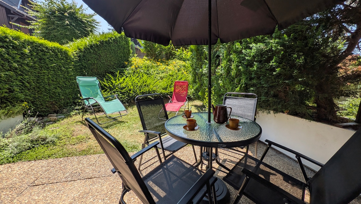 Új lakás, nagy terasz kilátással a Mont Blanc-ra.