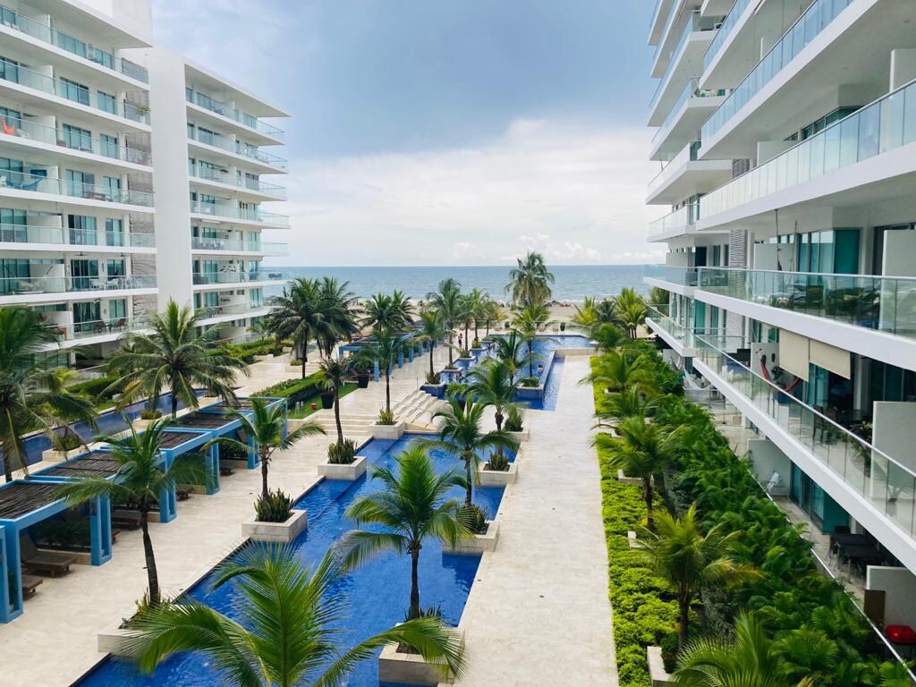 MORROS EPIC 7th floor beachfront - La Boquilla, Cartagena's only Blue Flag beach. Caribbean ocean view, 6 pools, gym, direct beach access, stunning sunsets. Exclusive hotel zone. 20 min to historic center, 8 min to Las Ramblas Mall. Ideal for families, couples, remote work. 500Mbps WiFi, fully equipped kitchen, A/C, washer/dryer. Quiet, away from Bocagrande crowds. 24/7 security, free parking. Direct owners - best price. RNT 200192.