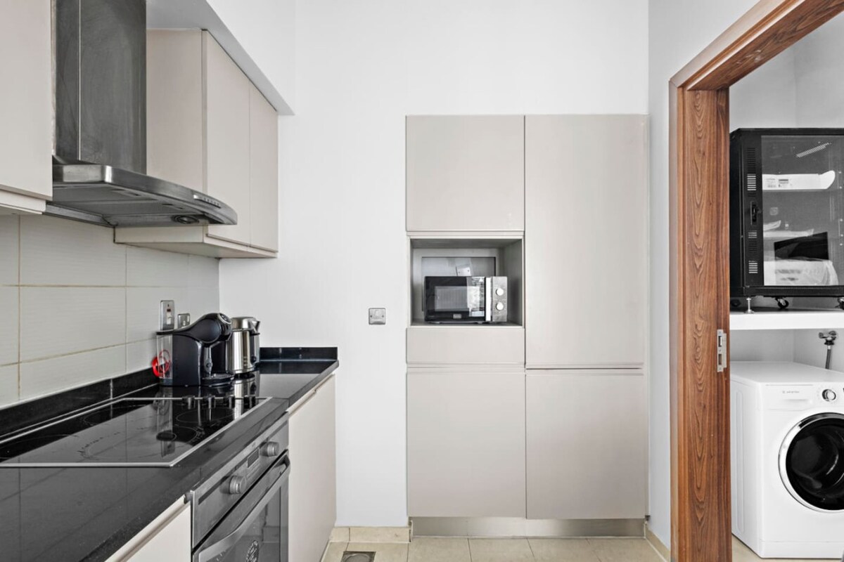 Élvezd a zavartalan kilátást a tengerre ebből a luxuslakásból a Palm Jumeirah Tiara Residence területén. Ez a tágas, egy hálószobás lakás king méretű ággyal, elegáns konyhával és saját erkéllyel büszkélkedhet. A vendégek egy privát strandot, medencét, edzőtermet és nonstop biztonsági szolgálatot is használhatnak. A lakásban mosógép/szárítógép is található a maximális kényelem érdekében. Éld át a csúcskategóriás életet Dubai egyik legrangosabb helyén, mindössze néhány percre az olyan ikonikus nevezetességektől, mint a Burj Al Arab és az Atlantis.