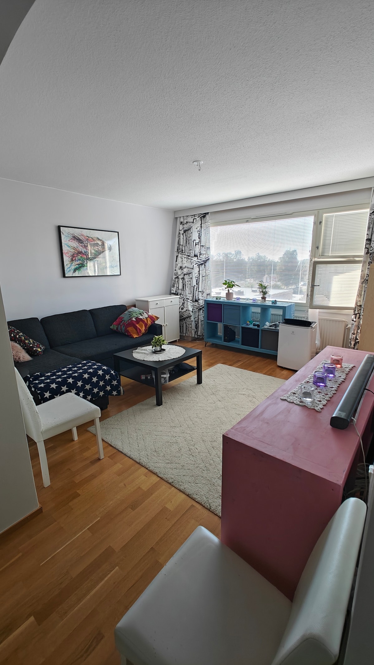 Rendkívül praktikus és teljesen berendezett lakás egy szép zöldterületen a központ és a repülőtér között. Ideális kiindulópont egy rövid vagy hosszabb tartózkodáshoz Helsinkiben. Kellemes légkör és minőség, amit alapvető plusznak hívok. Az apartman praktikus alaprajzzal rendelkezik, a nappalival és a hálószobával, valamint a közepén található konyhával, előcsarnokkal és fürdőszobával. A vonat (10 perc), a buszmegállók (2 perc) és a 24 órás élelmiszerboltok közelében található. Ingyenes parkolás!