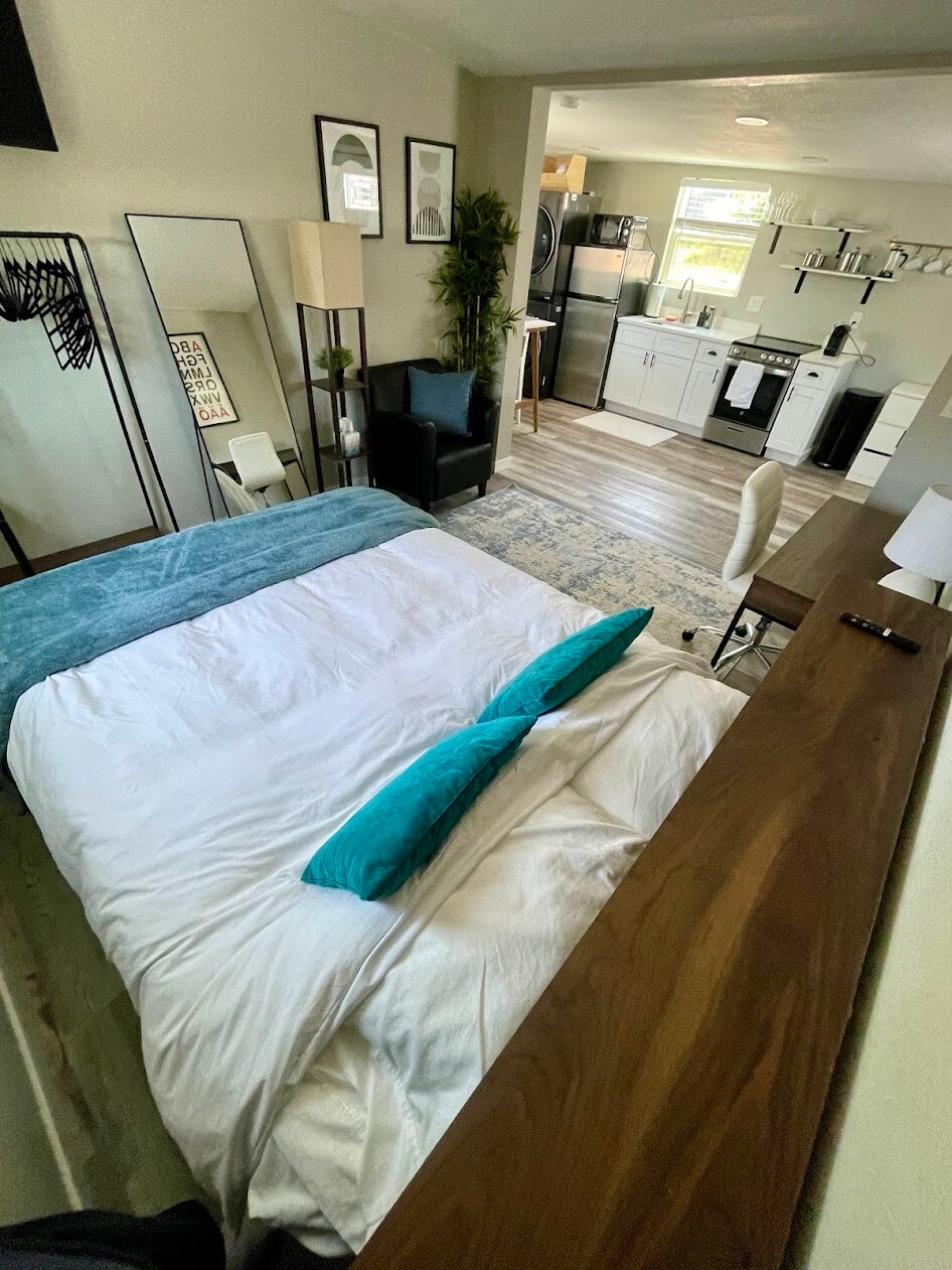 Rövid sétára Cherry Creek városától. Élvezd a városi életet Cherry Creek szívében. Sétálj el a butikokhoz, kávézókhoz és éttermekhez. Ez a stílusos, 1 hálószobás lakás dizájnerbútorokkal, nagy sebességű Wi-Fi-vel, alapvető konyhával és ingyenes parkolással rendelkezik. Ideális hétvégi kiruccanásokhoz, üzleti utakhoz vagy hosszabb foglalásokhoz. Ez a lakosztály king méretű ággyal, luxus fürdőszobával és saját bejárattal rendelkezik. A padlótól a mennyezetig érő ablakokkal és gyönyörű kertekkel körülvéve élvezze a nyugalmat és a csendet, miközben hozzáfér a Cherry Crk/& CCNorth éjszakai életéhez