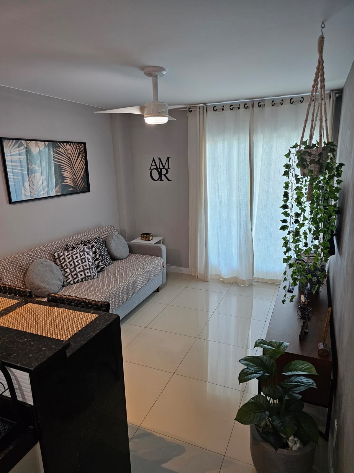 Você vai amar! Local estratégico. Avista parte da enseada, dunas, as montanhas de Arraial. Iluminado, ventilado, moderno, 92 m². Acomoda confortavelmente 5 pessoas, 1 cama queen e 1 solteiro no quarto e 1 cama de casal na sala. Conceito aberto na área social, sensação de bem estar em 3 amb climatizados, cozinha planejada . Varandão com sofá, mesa e churrasqueira. Amplo banheiro com banheira sem hidro. Banheiro auxiliar. WiFi, smart TV. Sol da manhã. Ideal família, 2 vagas.