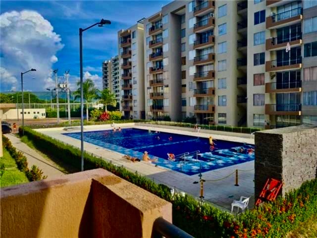 Két hálószobás lakás, 2 tévé (1200 csatorna + a legjobb ALKALMAZÁS), Wi-Fi, légkondicionálás, felszerelt konyha, mosóterület. Zárt garnitúra, három pisicinával, közösségi területtel, játékteremmel és edzőteremmel, focipályával és játszótérrel, ingyenes parkolással és minimális piaccal rendelkezik. A közelben található az Oxxo, a Supermercado Colsubisidio, körülbelül 1 km-re a Mall Peñalisa az ARA, a Dollar City és a D1. Girardot 3km.