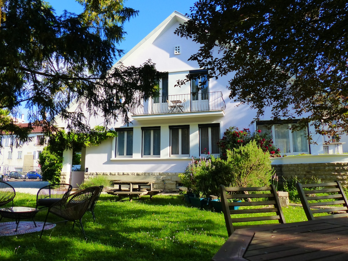 Vidék a városban! Üdvözlünk az Édes Óra-házban! Ez az ingatlan Lons Le Saunier városközpontjában található, közel a számos turisztikai helyszínhez és termálfürdőhöz. A földszinten elérheted a 3 csillagos, légkondicionált 3 szobás szálláshelyedet, amely nagy sebességű internet-hozzáféréssel rendelkezik. Nagy nappali felszerelt konyhával és nappalival, kilátással a saját teraszra és a kertre. 2 hálószoba és egy fürdőszoba balneo teszi teljessé ezt a nagy, világos szállást.