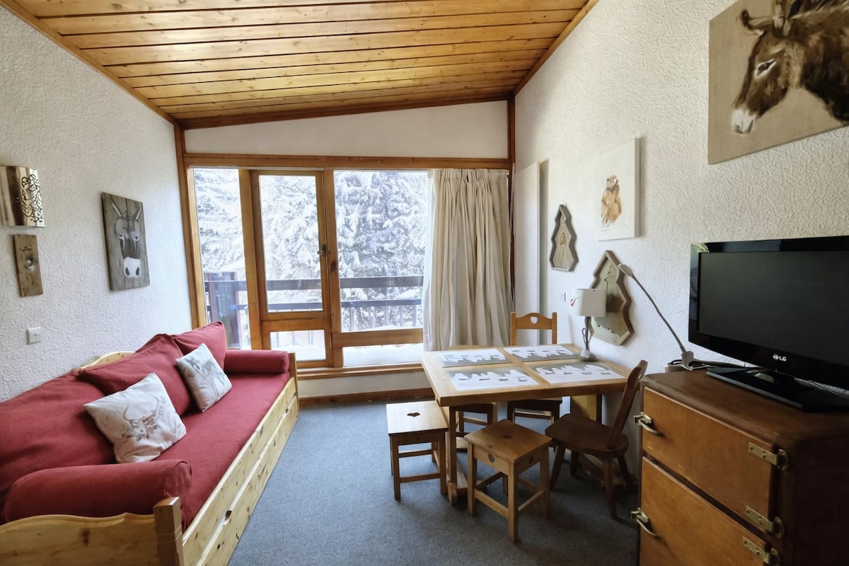 Apartman a Residence Le Miravidi negyedben, a falu szívében Le Charvet, kevesebb mint 50 méterre az összes kényelmi szolgáltatástól, 150 m-es fizetős parkolás (perc a lakóhely előtt lehetséges) , a pálya 80 méterre. 2023-ban teljesen felújított, minőségi anyagokkal minden kényelmet biztosítunk. Alvás: Franciaágy, félemeletes ágy, 1 kanapéágy Dekoratív kandalló és társasjátékok a kellemes pillanatokhoz