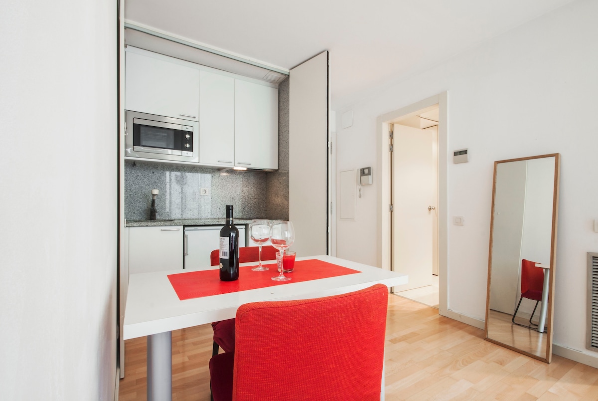You have come to the right place to find an unforgettable apartment! Our Elegant Zen Studio is inspired by visual aesthetics of Southeast Asia, based on a very interesting mix of noble materials such as bamboo and silk, giving it peaceful and warm atmosphere. The dining nook catches the sun and natural light and provides a spectacular view of Las Rambles. And be assured that you will not find a more centrally located flat!