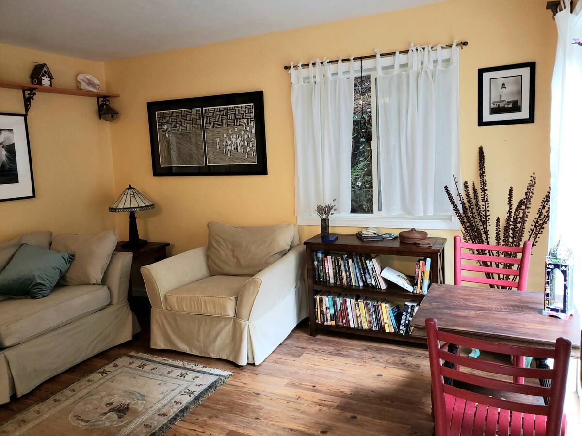 Üdv a bájos stúdióvendégházunkban Sunnybrae-ban, Arcata-ban! Egy privát ösvényen keresztül érkezel egy kényelmes térbe, amely modern konyhával, pezsgőfürdővel és napos terasszal rendelkezik – minden úgy van kialakítva, hogy otthon érezd magad. Csendes környéken fekszünk, mindössze 1 mérföldre Arcata belvárosától és a Cal Poly Humboldt-től. Foglalj még ma pihentető kiruccanást, és fedezd fel Arcatát, a fenséges vörösfenyőket és Humboldt megye vad tengerpartjait. Alig várjuk, hogy kellemes tartózkodást biztosíthassunk!