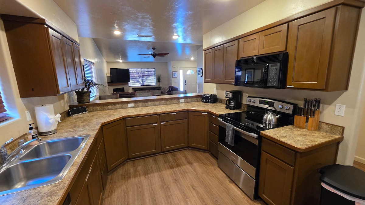 Stellar Views of Moab Rim and the San Juan Mountain. Rengeteg parkolóhely! hálószoba 1: king méretű ágy, privát mesterfürdő, 2. hálószoba: king méretű ágy, privát bejárat, hálószoba 3: queen méretű ágy. Kihúzható kanapé a nappaliban. Összesen 8 férőhely. Beltéri kandalló, WD, terasz, bekerített hátsó udvar, kültéri ülőhely, gázgrill, Wi-Fi, felszerelt konyha, fedett veranda, hatalmas csatolt garázs, a környék extra lakókocsis telkekkel (föld), közösségi medencefürdő, új szőnyegek, íróasztal, nagy tévé. Tiszta, biztonságos. Mindössze 7 percre Moab belvárosától.