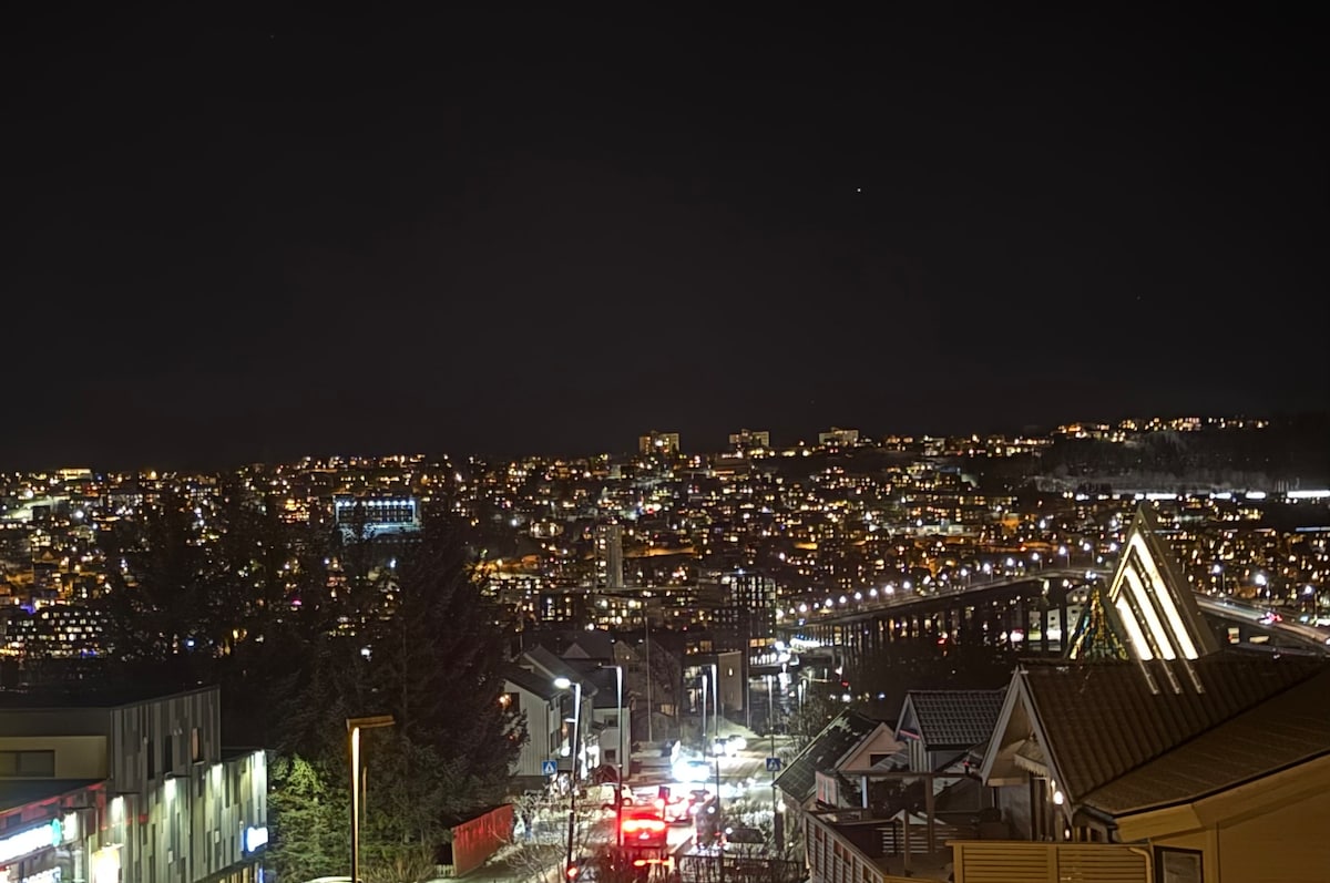 3 szobás, új, 90 nm-es lakás, kilátással a fjordra, a sarkvidéki katedrálisra, a hegycsúcs étteremre és a hídra a szárazföld és a sziget között. Központi elhelyezkedés Tromsø város és Donna/ UIT között. Sétatávolság Tromso városközpontjától és jó buszjáratok. Ha egy kisgyermekkel utazik, kínálunk Önnek egy kiságyat, etetőszéket, bilit, játékokat és egy babakocsit. (előre szükséges) Minden, amire szüksége van a kényelmes tartózkodáshoz. ❤️😊