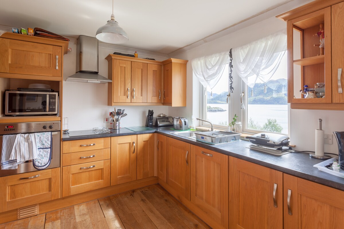 3 minutes from the ferry. You have access to Camard's own private estate of 87.5 acres of pastureland, Oak woodlands & waterfalls! Wild beachs within walking distance through the woods. Breathtaking views over the water to the mountains of Knoydart, which you may enjoy from the lounge or deck. Unwind, & completely digital detox, in one of the U.K,s most awesome, tranquil and beautiful locations. Forest tracks opposite. Please enquire 48 hrs in advance re booking a BBQ dinner if required. Relax
