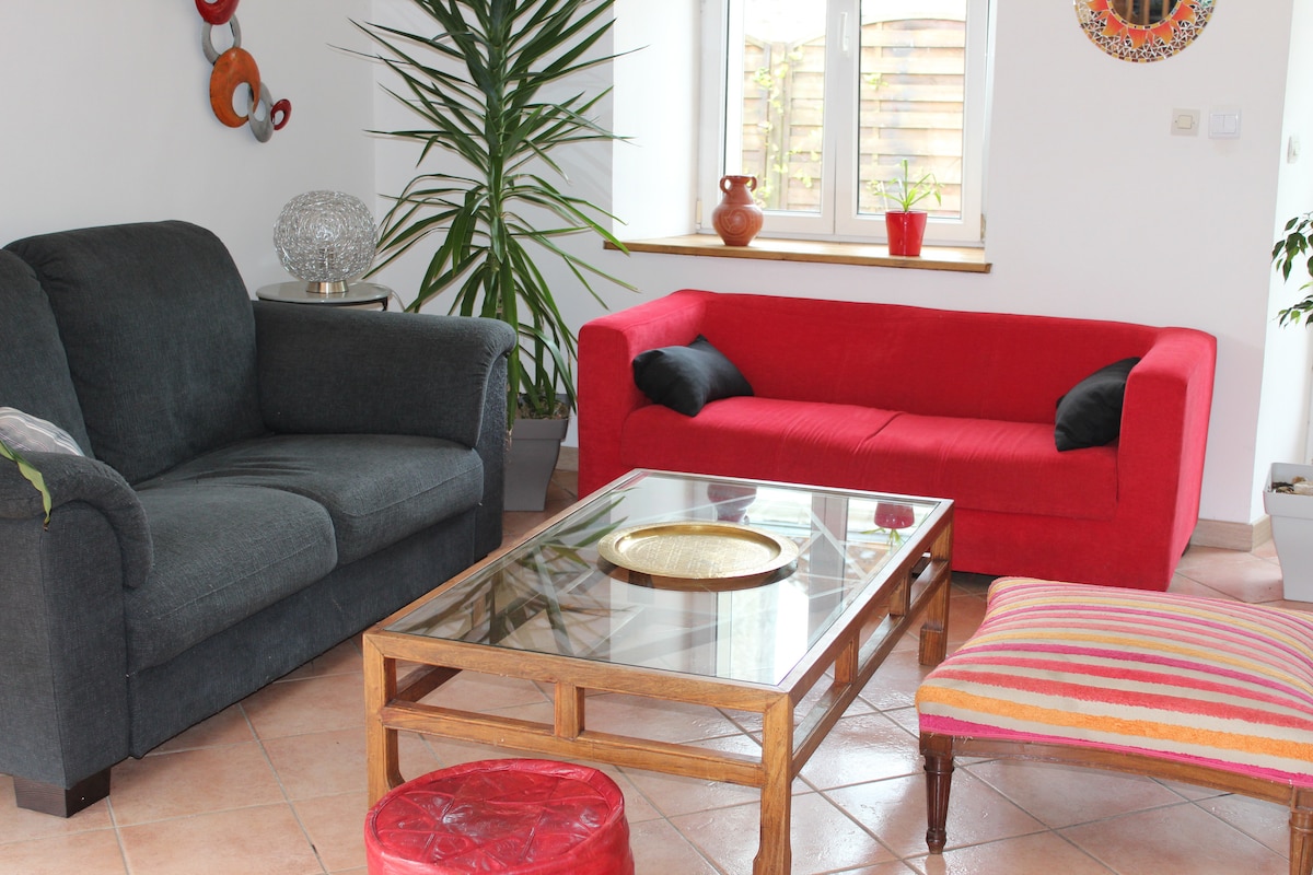 Imádni fogod ennek a bájos és otthonos szálláshelynek a dekorációját. A Givet és a Charlemont Fort központjához közeli csendes környéken található 19. századi burzsoá házat a közelmúltban felújították, miközben megőrzi eredeti karakterét. A hálószoba az első emeleten található, és a fürdőszobán osztozó kétágyas szobák része. A vécé és a közös konyha/étkező a házigazdák között ugyanazon a helyen található. Könnyű parkolás. Garázs kerékpárhoz és motorkerékpárhoz.
