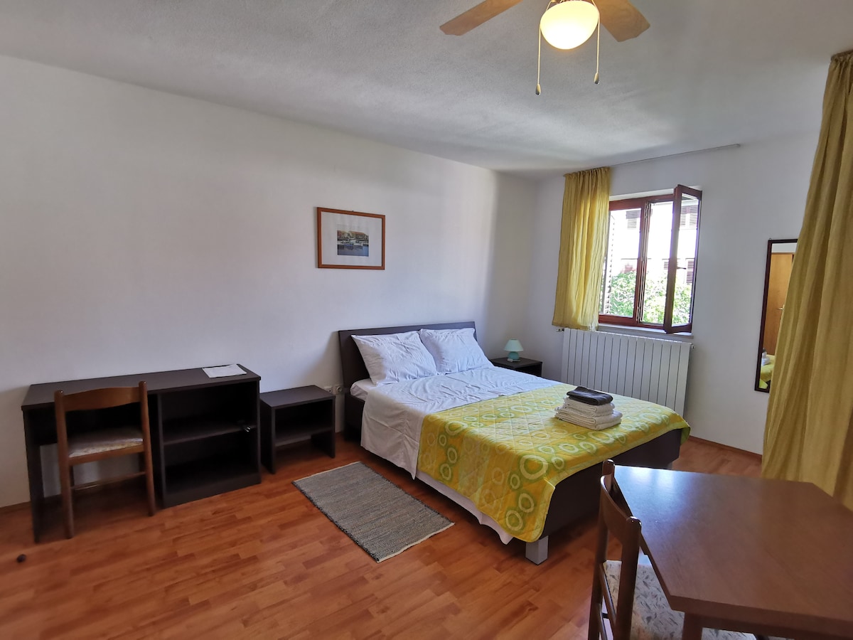 A lakás tágas belső térrel és minden szükséges felszereléssel rendelkezik a kényelmes tartózkodáshoz és pihenéshez. Hálószoba 160*200 ággyal, kényelmes matrac az édes álmokhoz. A konyha teljesen fel van szerelve mesterséges kerámialapos tűzhellyel, mikrohullámú sütővel, vízforralóval, valamint főző- és evőeszközökkel. Kényelmes kanapéágy, ha szükséges (140*200), légkondicionáló. Fürdőszoba zuhanyzóval. A terasz a lakáson kívül található a többiekkel együtt. A fa fontos szerepet játszik ebben a lakosztályban, a képek pedig különlegessé teszik, miközben élvezed a könyvolvasást!
