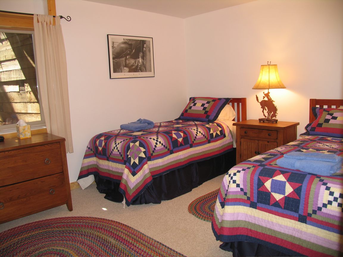 Enjoy a wonderful break from it all at this private cozy chalet. View the Mount Pisgah Mountains from large deck. This cabin has knotty pine vaulted ceilings on main level, master bedroom , full bathroom on main level. A spiral staircase leading to the second sleeping area in the loft, 2 twins and one Queen size beds. Living room has a gas fireplace, Roku T.V, internet, land line phone and washer/dryer. View the pond off the back of the cabin, Aspens , pine trees and wildlife, BBQ gas.