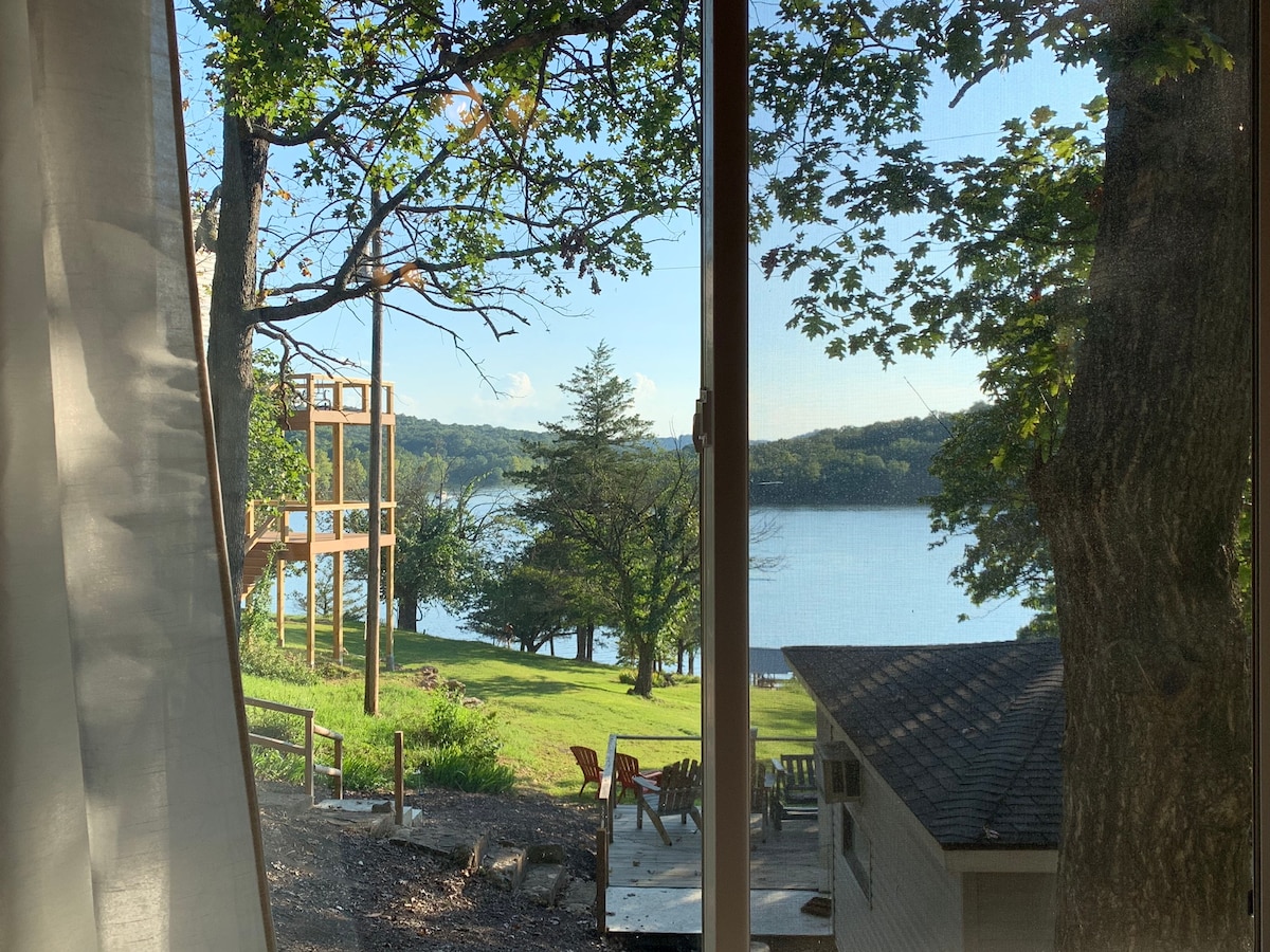 Minden a kilátásról szól. Ez a faház stílusú, padlótól a mennyezetig érő ablakokkal rendelkező ház több mint 180 fokos kilátást nyújt a tóra, és 600 láb magasan fekszik a víz felett. Ne aggódj, ha egy repülő repül alattad van, miközben a teraszon ülsz! Véleményünk szerint mind a ház, mind a telek teszi a kilátást az egyik legjobbá a Greers Ferry Lake-en! A fényképek nem szolgáltatnak igazságot ezen a helyen. Látnod kell!