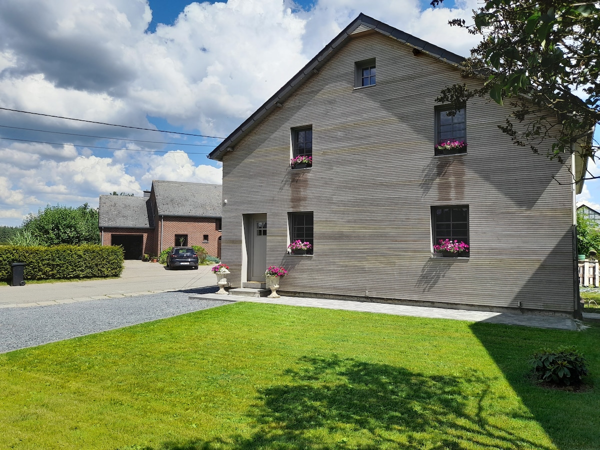 Authenticité, charme et confort en Ardenne:-) Accueil personnalisé; nous prenons du temps avec Vous pour répondre à un max d'attentes ! Au coeur de la forêt d'Anlier, dans une nature encore préservée, tout en étant proche de grands axes... gîte mitoyen, "welcome bike", "green key" ; aire de jeux extérieurs (foot, badminton) et salle de jeux intérieurs (ping-pong, babyfoot)... New : Borne de recharge pour voitures électriques! See herafter for details and extras for pet, fire place (pellets).