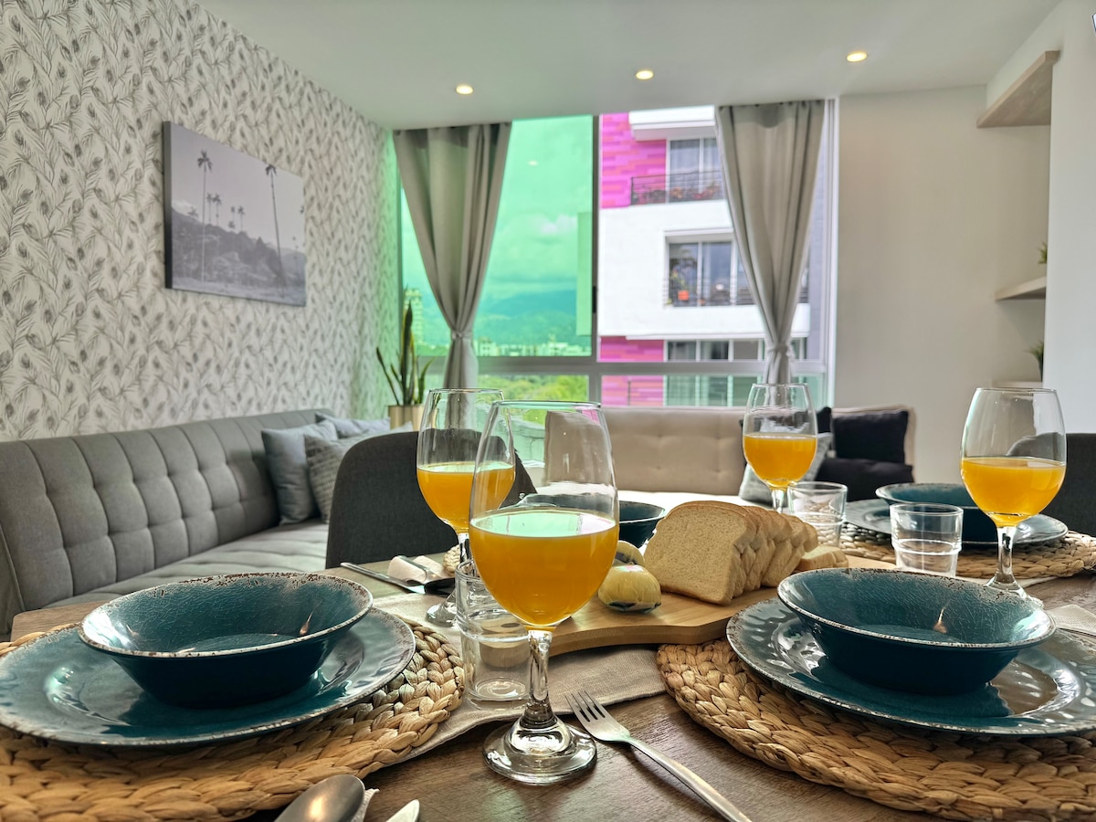 **Charming Aparttaestudio in Armenia** Élvezd a felejthetetlen tartózkodást a negyedik emeleten található hegyvidékre néző stúdiónkban. Az Örményország kiváló területén található parkok, bevásárlóközpontok, klinikák, éttermek és egyebek közelében leszel. A tömegközlekedés könnyen elérhető, így olyan turisztikai célpontokat érhetsz el, mint Circasia, Salento és Filandia. Az épület medencével, jacuzzival, szaunával, biliárddal és közösségi terekkel rendelkezik. Tökéletes az Eje Cafetero kalandodhoz!