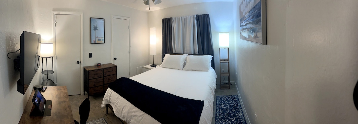 ÚJONNAN FELÚJÍTOTT - Élvezd Gainesville-i szállásodat ebben a századközepi modern stúdióban, 0,5 mérföldre az UF-től és 2 mérföldre az UF-től és a HCA kórházaktól. Ebben a gyönyörűen berendezett, különálló vendégházban semmilyen részletet nem hagytak figyelmen kívül, amely rengeteg természetes fénnyel, előkelő felületekkel és végtelen kényelmi szolgáltatásokkal rendelkezik - teakonyha, mini hűtőszekrény/fagyasztó, intelligens TV stb. Ez a kényelmesen elhelyezkedő, privát és csendes hely Gainesville szívében tökéletes bárkinek, aki csak egy éjszakára vagy néhány hétre látogat el ide.