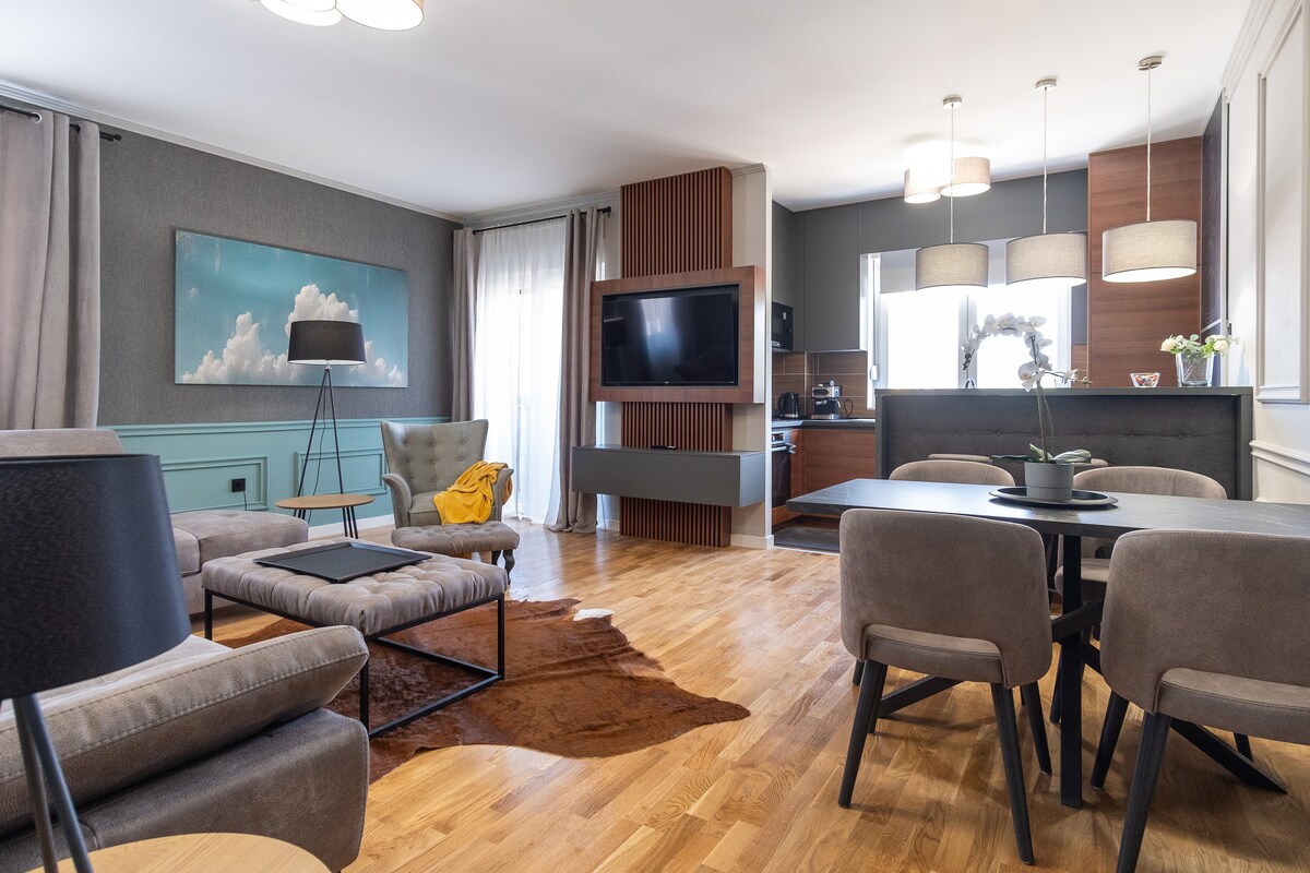 Kivételes és luxus apartman modern design található központjában Trebinje, kilátással a Trebisnjica folyóra, Hercegovačka Gračanica és az Óváros. Az apartman teljes területe 49 m2, a 4. emeleten, és egy nappali, hálószoba, konyha étkezővel, előszoba, fürdőszoba és erkély. Az apartman teljesen felszerelt, minden felszereléssel és konyhai felszereléssel, így a vendégek egy kényelmes, kellemes és kellemes nyaralást. A lakáshoz tartozik egy garázs és egy lift.