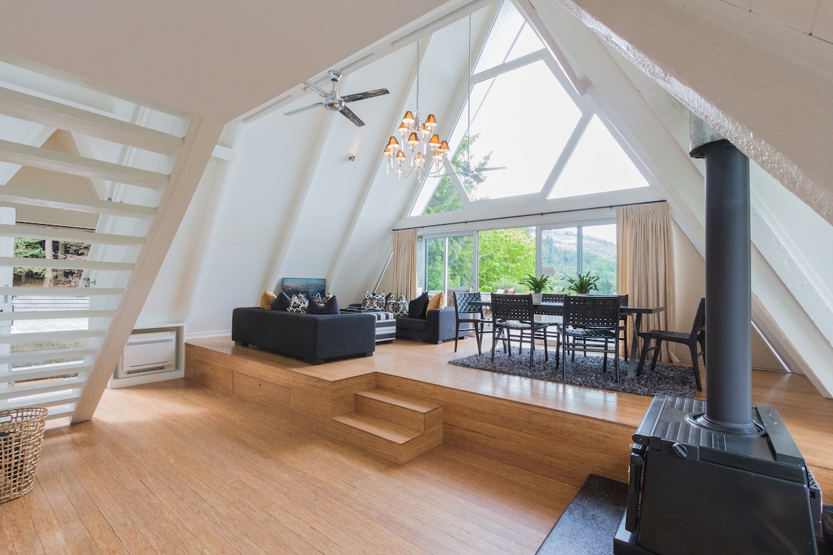 Take in stunning views of Coronet Peak ski field from the living room of this renovated A-frame chalet. Just five minutes' drive from central Queenstown, it’s ideally located with world-class mountain biking and walking tracks right on your doorstep. The chalet boasts some of the best views and sunshine in the Wakatipu Basin. Spread across two floors, the chalet features 3 double bedrooms, an indoor wood burner for cozy nights, and a fantastic outdoor hot tub to unwind after a day of adventure.