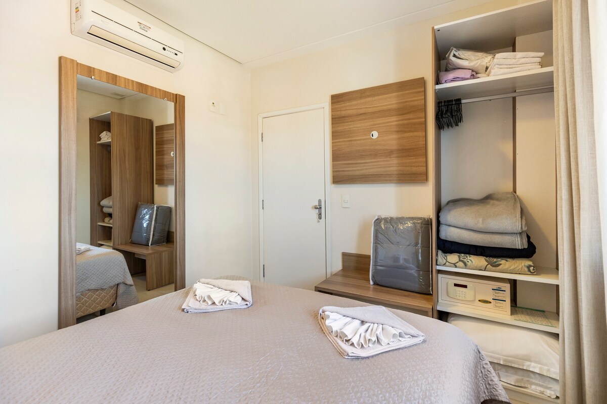 Apê moderno com ar-condicionado, varanda, cozinha completa e decoração de design. A 10 min do Cambuí, 15 min do Aeroporto de Viracopos, 6 min da Rodoviária e 5 min do Campinas Shopping. A uma quadra da Av. Amoreiras e do Parque Villa Garden, com supermercados, Oba, McDonald's, padarias, BRT, restaurantes e muito mais ao redor. Prédio com piscina, academia, rooftop, mini mercado 24h e academia Panobianco. Perto de tudo!