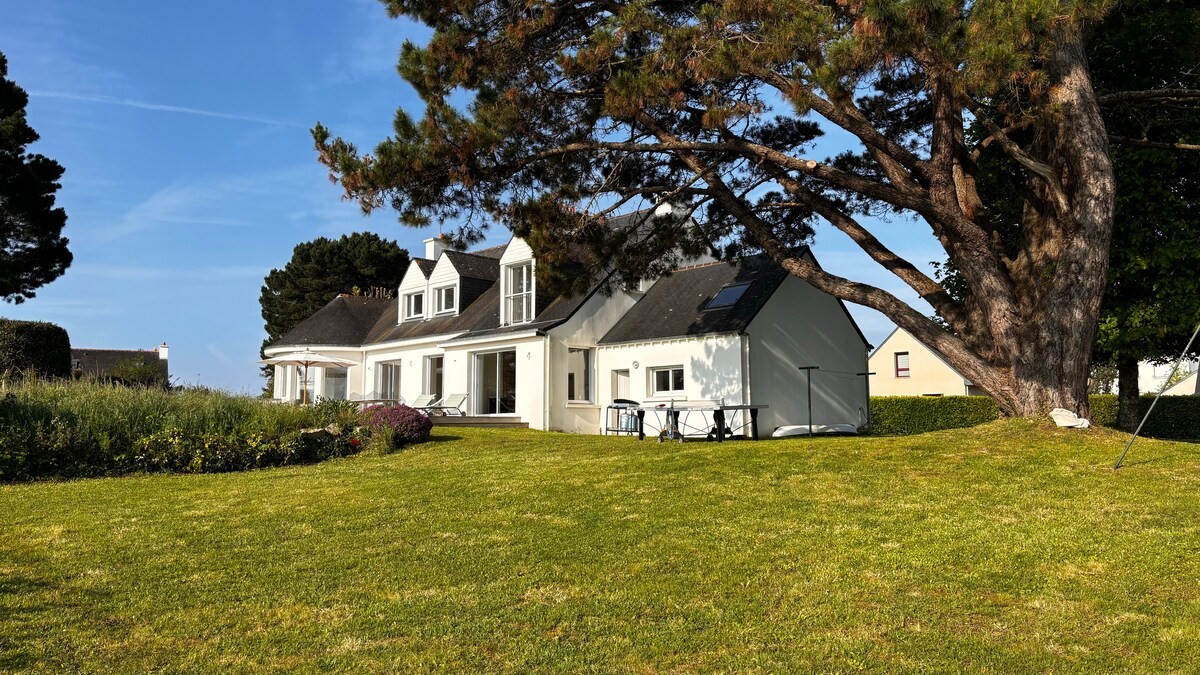 Élvezd ezt a gyönyörű házat, amely a Golf du Morbihanra néz. Hozzáférés a tengerhez és a Locmariaquer faluba vezető tengerparti ösvényhez. Az óceántól 3 km-re található ház néhány perc sétára, biciklivel vagy autóval található Bretagne legszebb strandjaitól. A nagy kert és a teraszok lehetővé teszik, hogy a kellemes pillanatokban gyönyörködj a kilátásban.