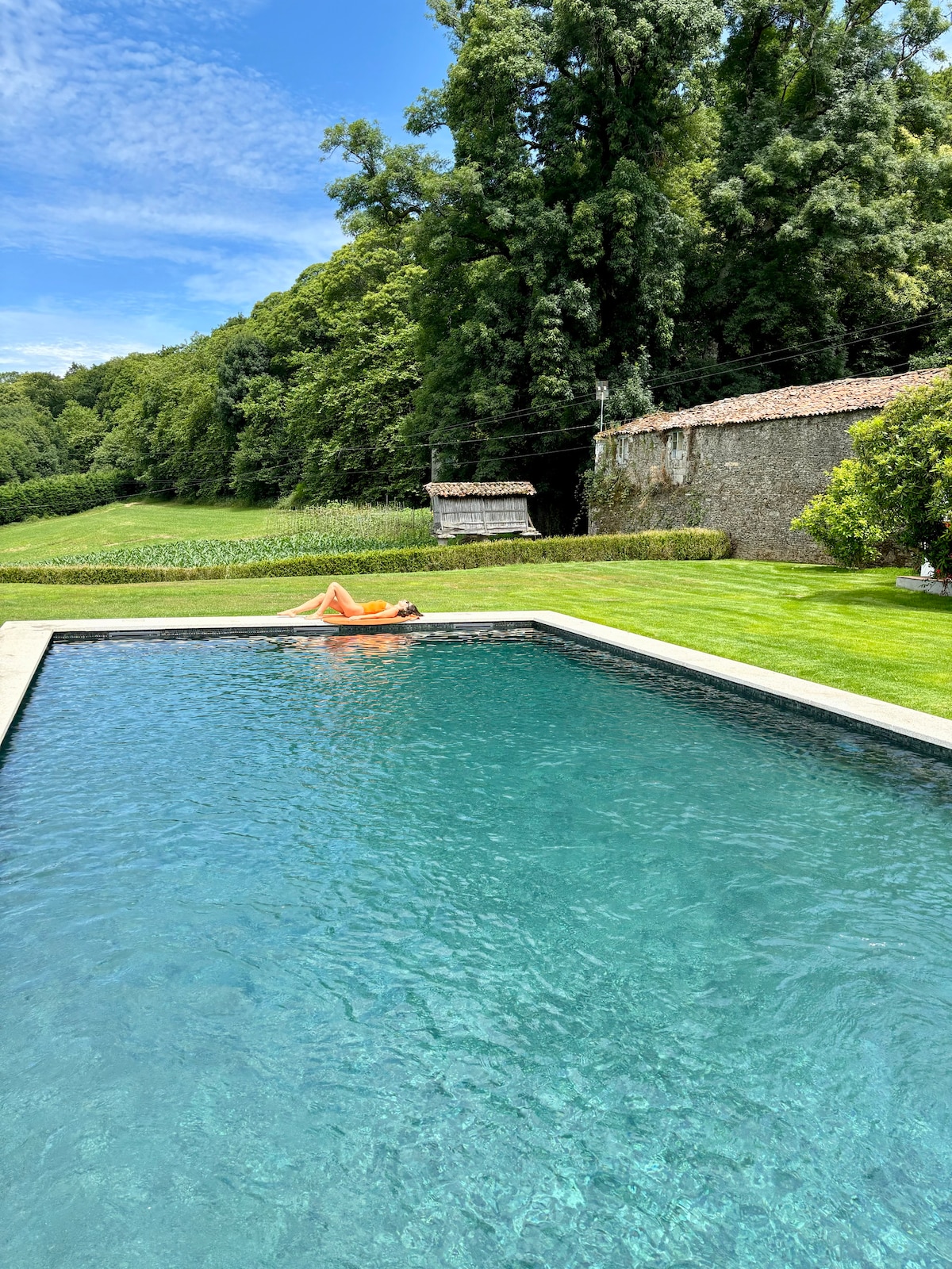 Ebben a szálláshelyben nyugalom uralkodik. Pihenj az egész családdal! Egy felújított kőházban, 25 percre Coruñától és a fő strandoktól, és 15 percre Betanzostól. Ház minden szolgáltatással és egy nagyon eredeti medencével, amelyet egy régi mosókonyha formájában építettek, ellenáramú vízsugárral. Kapcsolódj ki a zajból és a stresszből a nagy birtokodon. Három hálószobája van, amelyek közül az egyikben 2 pótágy található a tetőtérben, hogy élvezhesd a házban lévő kicsiket.