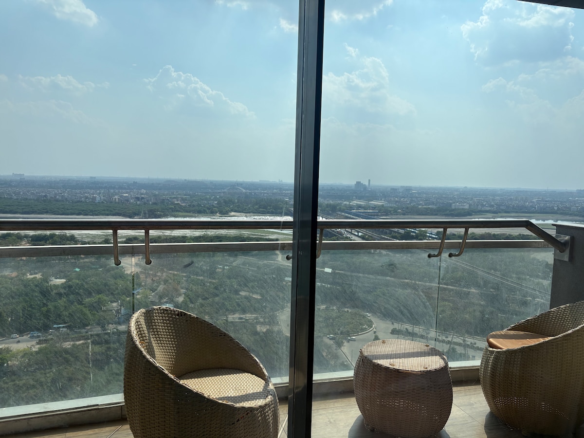 Wake up to serene views of the Yamuna River from this beautiful 20th Floor Apartment, sunlit apartment featuring a spacious private balcony—perfect for morning tea or evening relaxation. The home offers a comfortable stay with a fully equipped kitchen, high-speed WiFi, smart TV, air conditioning, and a refrigerator. Bright interiors and cozy furnishings create a peaceful retreat, while the large balcony adds a touch of luxury and open-air charm to your stay.