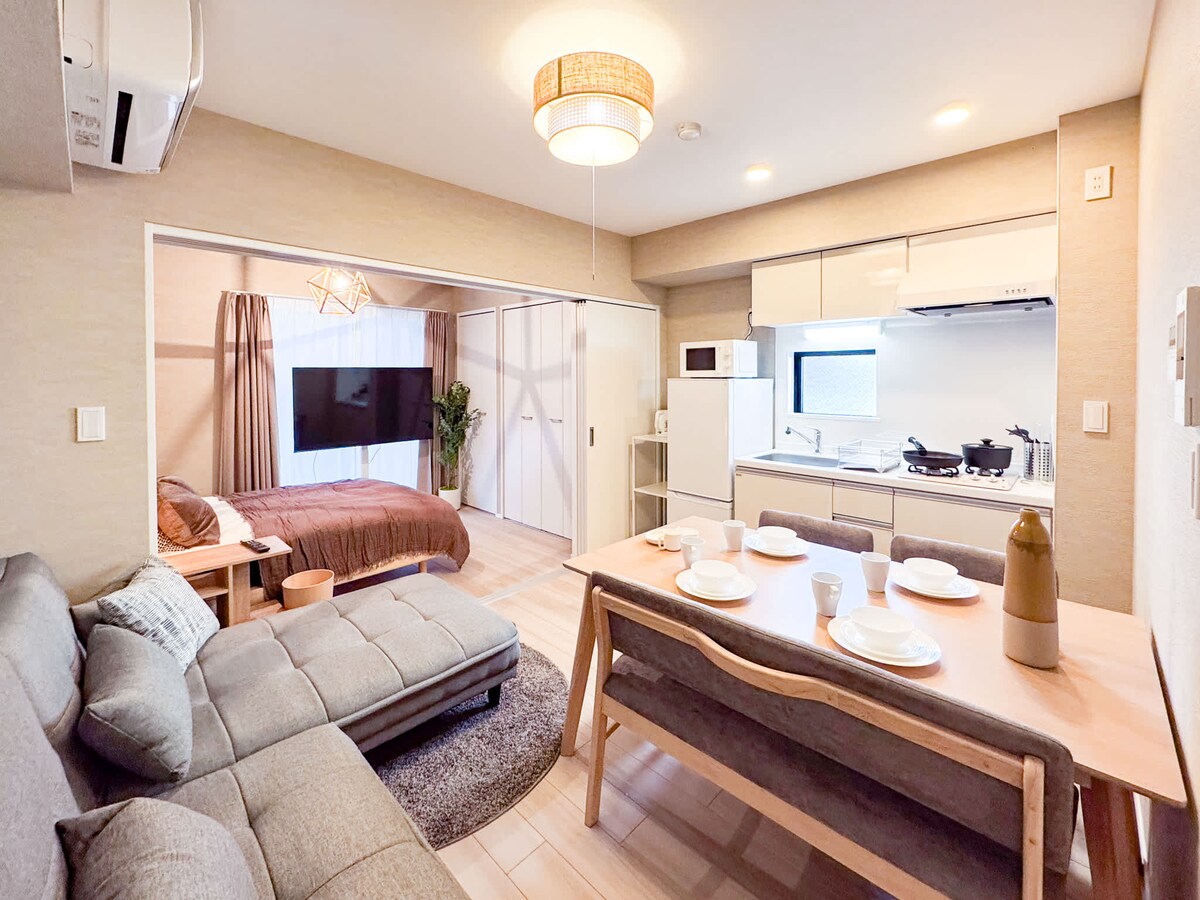 Az apartman mindössze 150 méterre található a híres Sensō-ji templomtól, ahová könnyedén el lehet sétálni. 55hüvelykes HDTV ingyenes hozzáféréssel az összes Netflix-tartalomhoz! Számos üzlet található a környéken, ahol élvezheted a vásárlást és az étkezést. A lakás teljesen fel van szerelve minden szükséges felszereléssel. Különösen napos, és az ablakból gyönyörű kilátás nyílik a kék égre és a Sensō-ji templomra, amely meleg és békés légkört biztosít az utazás során.
