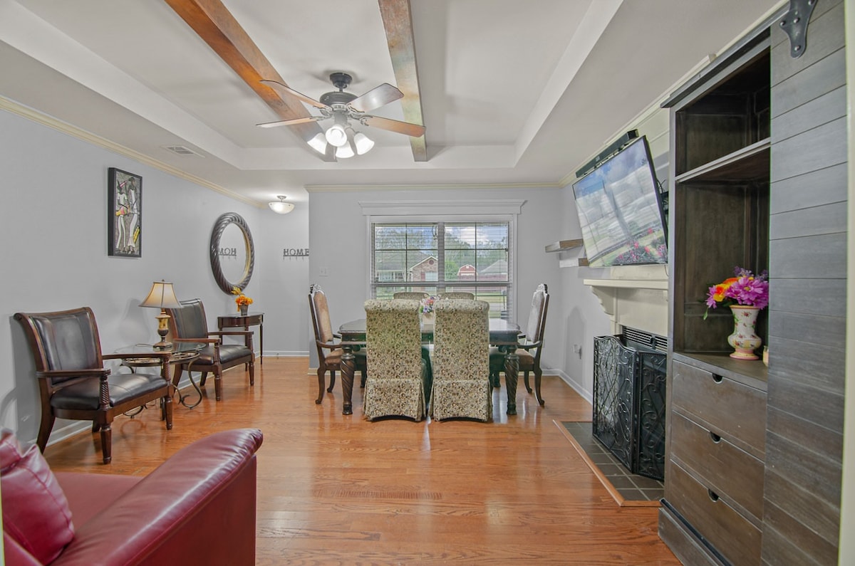 Welcome to Comfort Cozy Oasis—your family-friendly retreat near Baton Rouge! This spacious 5BR, 4BA gated home sleeps 10 and features a loft, large kitchen, EV charger, basketball court, swing set, and cozy fireplace. Enjoy fast Wi-Fi and a peaceful backyard, just 30 mins from LSU and close to New Orleans. Perfect for families or groups seeking comfort, space, and Southern charm!