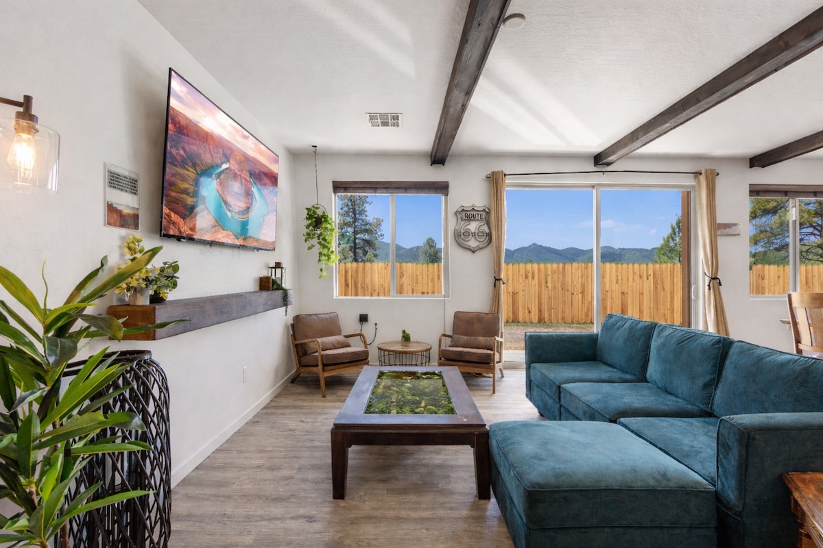 Szállj meg ebben a stílusos, vadonatúj otthonban, ahol biciklivel vagy terepjáróval utazhatsz a felhajtónkról a Kaibab Nemzeti Erdőbe (körülbelül 0,5 mérföldre innen), sétálhatsz a tóhoz az utca túloldalán, ahol park és játszótér található, vagy magaddal viheted a golfütőidet, és eltöltheted a napot az Elephant Rocks golfpályán! Van egy kávézó, teljesen felszerelt konyha, grillező, mosógép és szárítógép, valamint garázshozzáférés. Néhány percre vagyunk Williams belvárosától, egy órányira a Grand Canyon National Park South Rimtől és 90 percre Sedonától