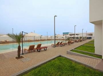 ¡Disfruta de una estadía de lujo en este exclusivo departamento! Cuenta con: 2 habitaciones 2 baños Sala-comedor Terraza con piscina interior Lavandería Cochera Además, accede a áreas comunes: Canchas de básquet, fútbol, tenis y voley net Gimnasio Ping Pong, billar y fútbol de mesa 2 piscinas con seguridad Restaurante Playa privada Juegos para niños Actividades los fines de semana Ideal para relajarte y disfrutar con familia o amigos. ¡Reserva tu escapada perfecta! (No se aceptan mascotas)