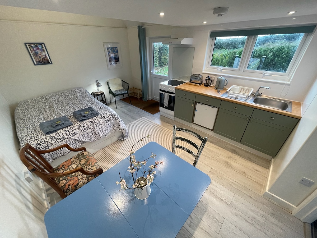 A newly converted hayloft set up as a one bedroom house. Pitched, beamed ceiling in bed/sitting room, own kitchen downstairs. Spacious shower room, separate small WC No TV but WiFi. Private entrance from village lane into property. In the heart of the Bride Valley so perfect for all year round walkers and nature lovers. Jurassic Coast 5 miles away. One of the richest areas in the UK for hill forts and ancient earthworks. Very houseproud so regrettably no pets and no smokers.