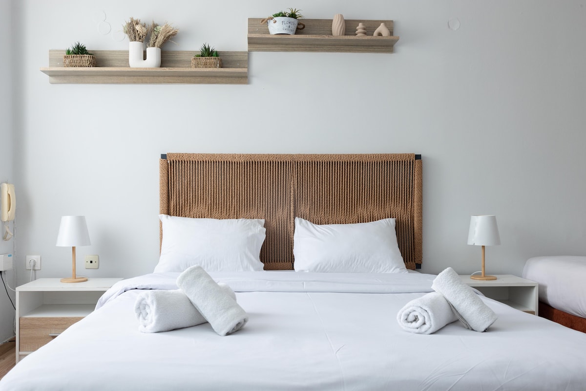 Modern tér a város szívében, 3 ággyal, 2 A/C központi fűtéssel és intelligens TV-vel.Az Agia Sofia épülete az ötödik emeleten található, egy eléggé gyalogos utcában!Ideális azoknak az utazóknak, akik szeretnék felfedezni a városközpontot, vagy azoknak az üzletembereknek, akik nem szeretnének semmilyen közlekedést igénybe venni.Frissebb lépések a vízparttól és könnyű gyaloglás minden helyszínre!Önálló bejutás 24 órán át! 4 fő elhelyezésére alkalmas, központi fűtéssel, 2 A/Cs és intelligens TV-vel .
