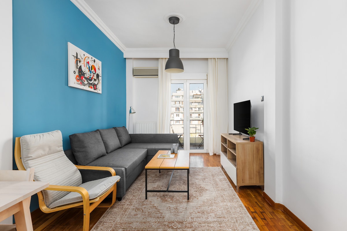 Pihenj ebben a világos, tágas, 65 m2-es lakásban, amely magas mennyezettel rendelkezik. Fedezz fel egy békés, 3 helyet közvetlenül a városközpontban, az Arisztotelész tér mellett. A kikötő, a múzeumok, az éttermek, a kávézók, a szupermarketek gyalogosan megközelíthetők! Élvezd az üvegszálas, 100 Mbps sebességű Wi-Fi-t. Két légkondicionáló egység melegíti fel a teljes lakást, és otthonos környezetet teremt, hogy ellazulhasson egy városnézéssel töltött nap után.